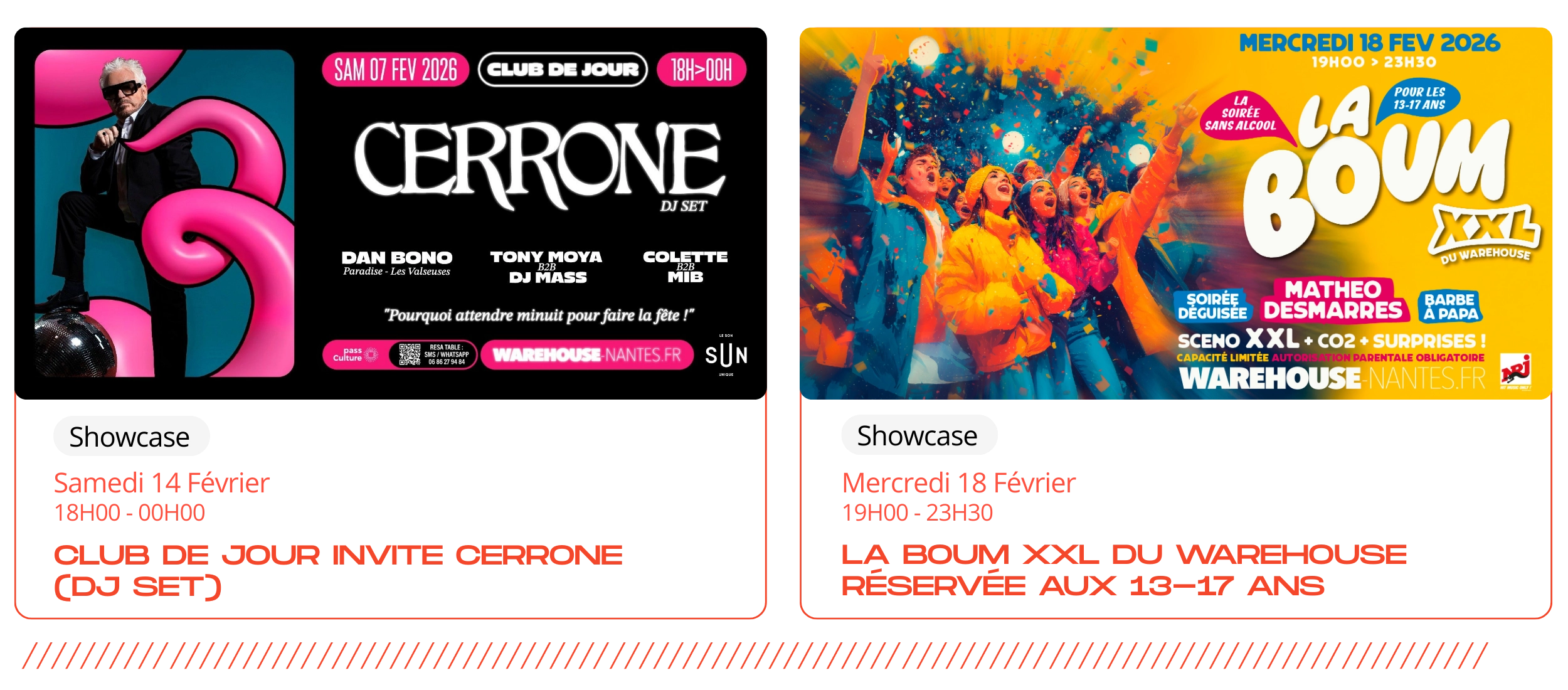 Mercredi 18 février à 19:00 – La BOUM XXL du Warehouse | La BOUM XXL revient avec une soirée sans alcool réservée aux 13-17 ans. Un événement festif, encadré et sécurisé, offrant aux plus jeunes une première expérience club adaptée.