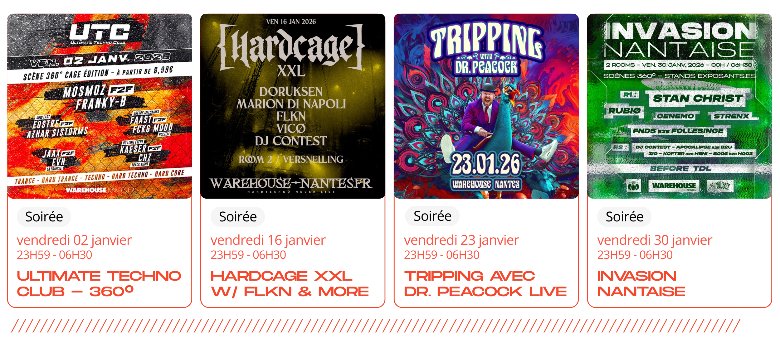 Janvier voit aussi le retour de formats emblématiques comme Ultimate Techno Club et Ware Station, sans oublier vos rendez-vous incontournables Fuego et Versus.