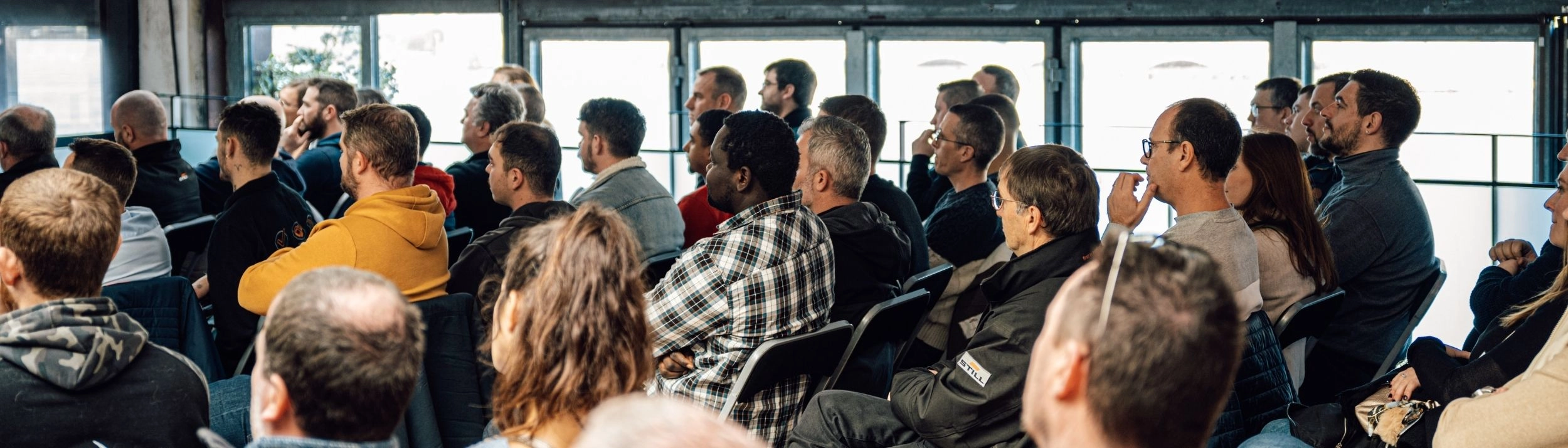 Dès 8h, une centaine de participants se sont retrouvés à l’étage de la TDL, un espace modulable, agrémenté d’une verrière baignée de lumière. La matinée était dédiée à une conférence interne entre managers. Nos équipes ont assuré l’installation technique complète : micro, mobilier, écrans et préparé chaque détail, jusqu’à la disposition des goodies sur les chaises avant l’arrivée des invités.
